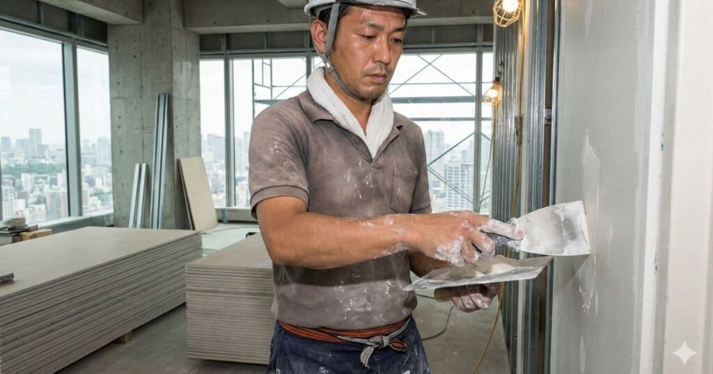 実は、ローラーで壁をコロコロしているのは若手だったりすることも珍しくありません。先輩達が何をしているかと言うと下地作りです。